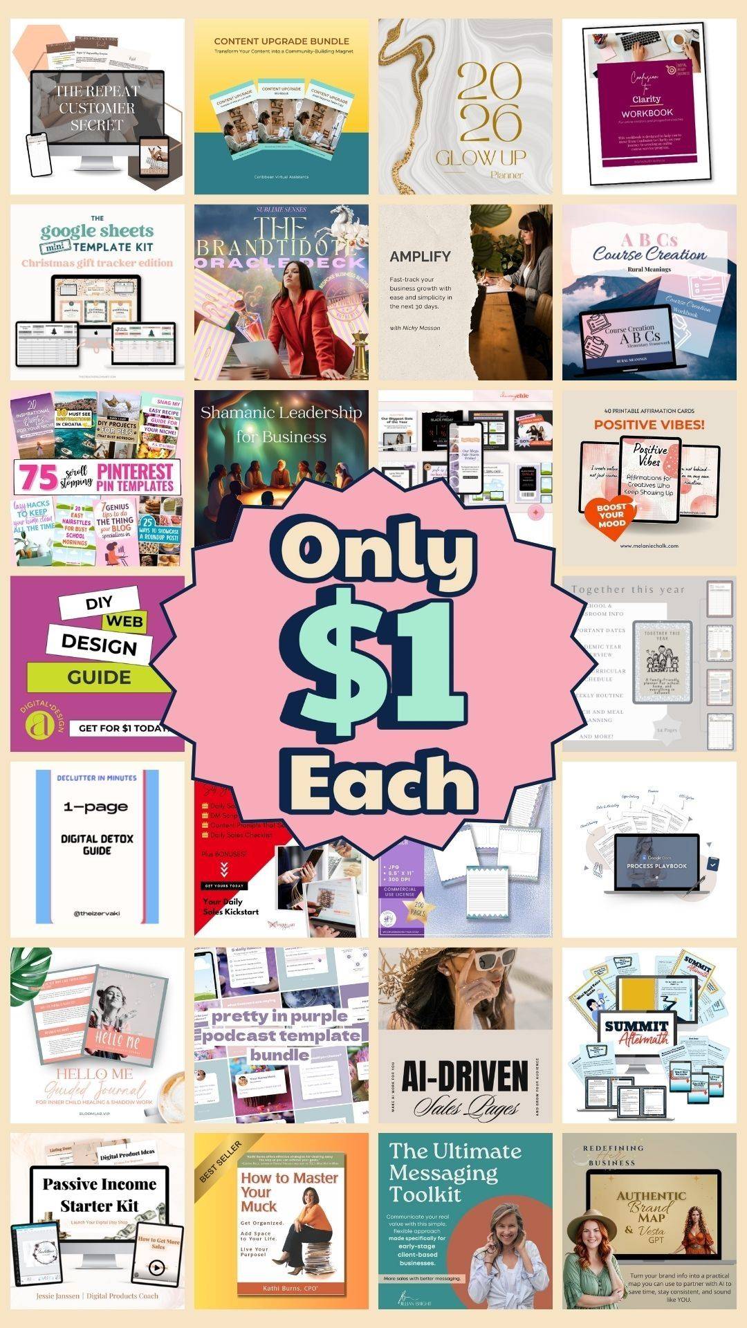 Burnout doesn’t look good on you 🔥 Get These and More For JUST $1 Nope, that’s not a typo, you really can get 50 amazing, life-changing products for just $1. each!🎉 I’ve included my 2026 Glow Up Planner as part of a super fun event where every product is on sale for just $1 (or £1, €1, depending on the creator’s usual currency). It’s kind of like those old-school sweet shops where you’d grab a paper bag and pick all your favorites… except this time, it’s a lineup of digital business products...